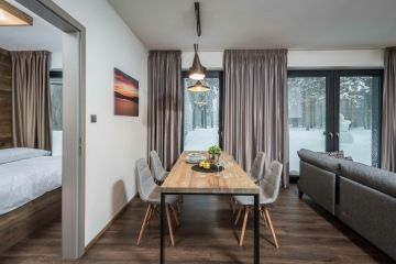 The location of Královka is truly extraordinary. It is situated in a quiet location, on one of the hills of the Jizera Mountains and literally blends in with the surrounding forests and nature. When planning the whole concept of Královka, the main idea was to combine this unique place with top gastronomy and exclusive accommodation that will match the charm of the whole area. One of the highlights of a stay in the hotel is not only relaxation in the wellness and spa, but also a renowned gastronomic experience in the Královská restaurant under the baton of chef Patrik Bečvář - captain of the National Team of Chefs and Pastry Chefs AKC ČR. Skiing fans will appreciate the location directly on the route of the Jizera Highway offering a 200 km long cross-country skiing track. From spring to autumn, this area is a paradise for cyclists and hikers.
