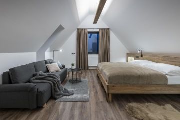 At Královka you can choose between spacious apartments and cosy hotel rooms. Both options combine modern design, comfort and respect for the place in which they were built.
